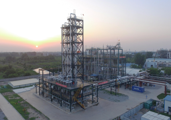 2019年,团队与中科柏易金公司等合作开展“千吨级生物质催化转化制乙二醇中试项目”,于2022年初在河南濮阳建成了国际首套千吨级生物质催化转化制乙二醇装置,并于同年6月首次投料,一次性打通了工艺流程,获得了工业级的生物质乙二醇产品。随后,项目团队对装置流程进行了技改升级,于2023年10月16日完成72小时现场考核,结果表明,乙二醇产物选择性接近80%,产品分离纯度达到99.9%,紫外透光率达到聚酯级乙二醇国家标准。装置运行数据表明,该技术路线的技术经济性优于现有的生物乙醇-生物乙烯-生物基乙二醇技术路线。同时,出产的生物质乙二醇产品经用户合成聚酯测试,品质优于煤炭基乙二醇。该中试运行结果为生物质催化转化制乙二醇技术的万吨级工业应用奠定了基础。