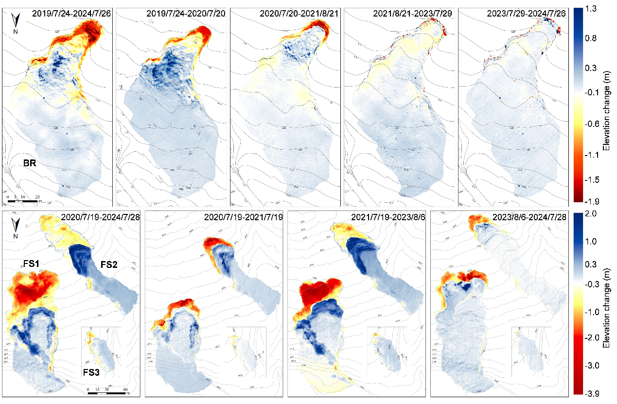 相关研究成果以Centimeter-resolution 4D dynamics of retrogressive thaw slumps from repeat UAV photogrammetry on the Tibetan Plateau为题,发表在《环境遥感》(Remote Sensing of Environment)上。研究工作得到国家重点研发计划、国家自然凯发k8基金、甘肃省自然凯发k8基金和凯发k8“西部之光”人才培养计划的支持。